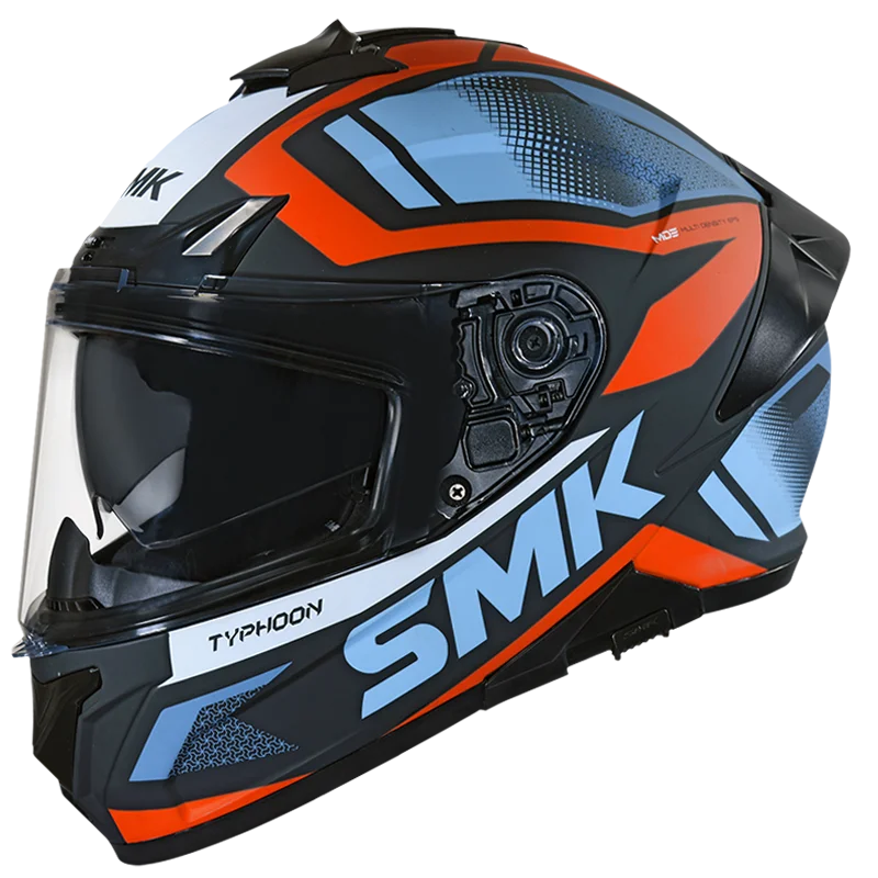 TYPHOON THORN is a Full-face helmet with a compact and aerodynamic shell design that appeals to sports tourers and daily commuters. The Typhoon range of helmets from SMK comes with industry-leading safety and comfort features. Enhanced with amazing graphics and solid colors, it gives you the option to pick one that mat